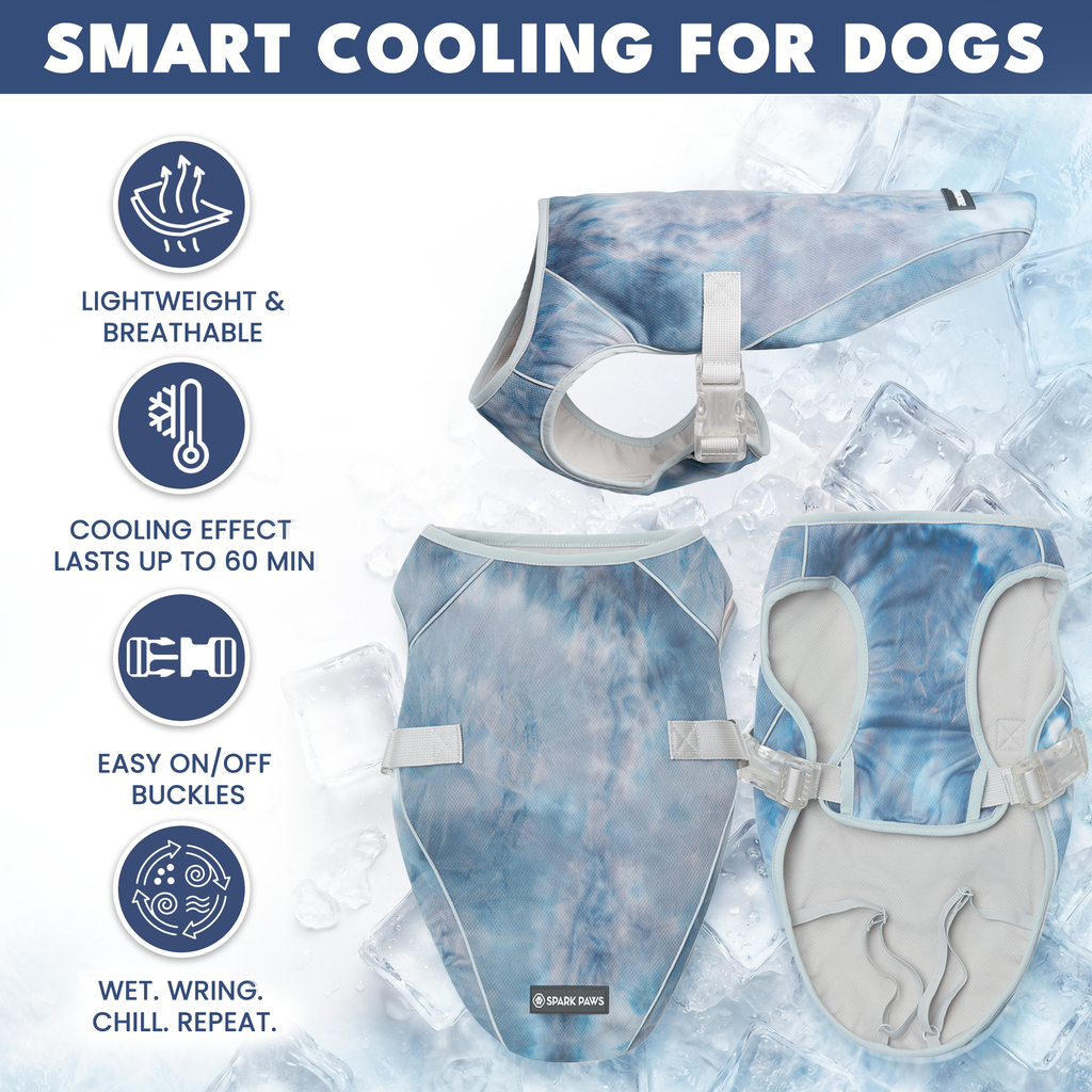 チルテック・クーリングベストは、夏場に熱がこもりやすい愛犬のために必要なアクセサリーです。水に濡らして絞り、子犬に着せるだけで、蒸発を利用して犬の体温を下げることができます。生地は保水性を高めるために特別に設計されており、これが冷却効果を生み出します。メッシュの層が空気を循環させ、日光を遮って、UVカットと遮光効果を高めます。