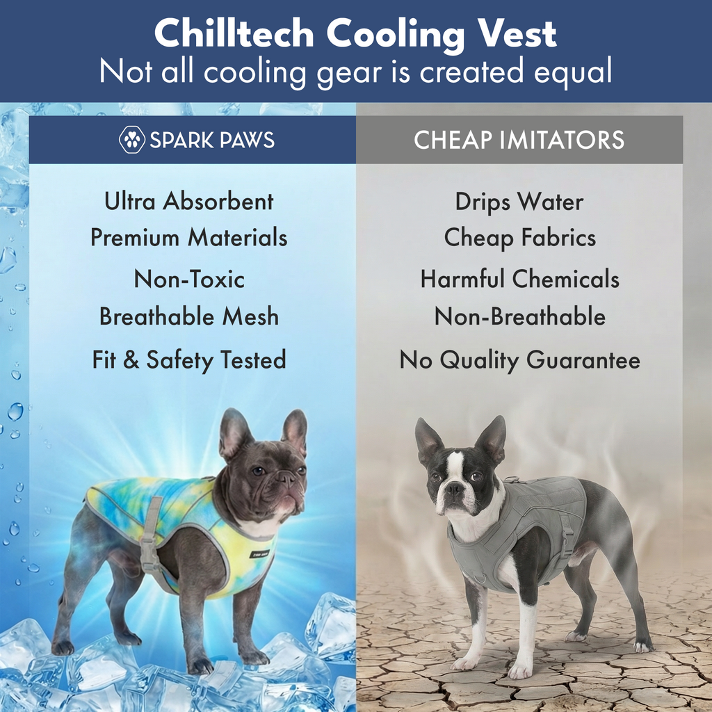 チルテック・クーリングベストは、夏場に熱がこもりやすい愛犬のために必要なアクセサリーです。水に濡らして絞り、子犬に着せるだけで、蒸発を利用して犬の体温を下げることができます。生地は保水性を高めるために特別に設計されており、これが冷却効果を生み出します。メッシュの層が空気を循環させ、日光を遮って、UVカットと遮光効果を高めます。