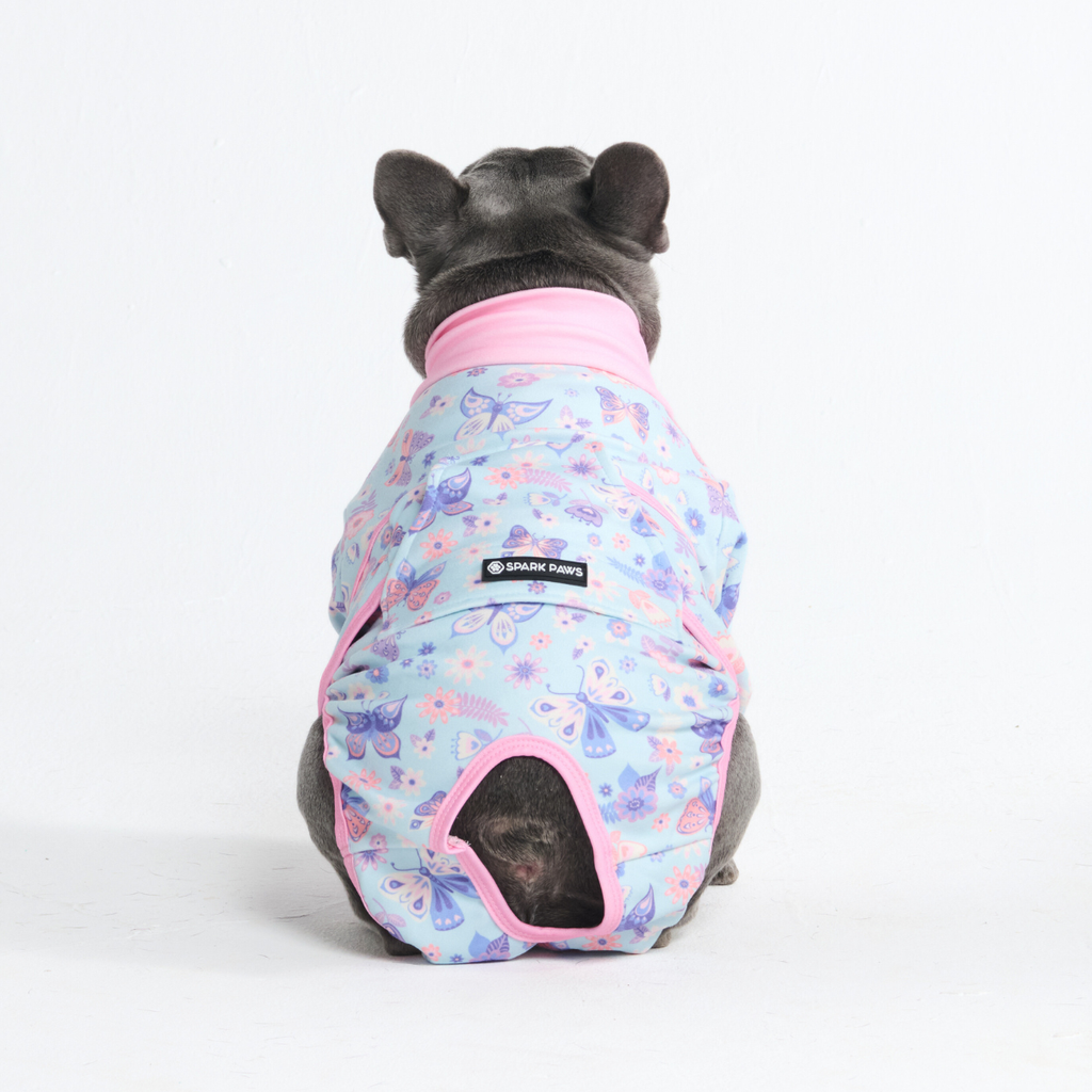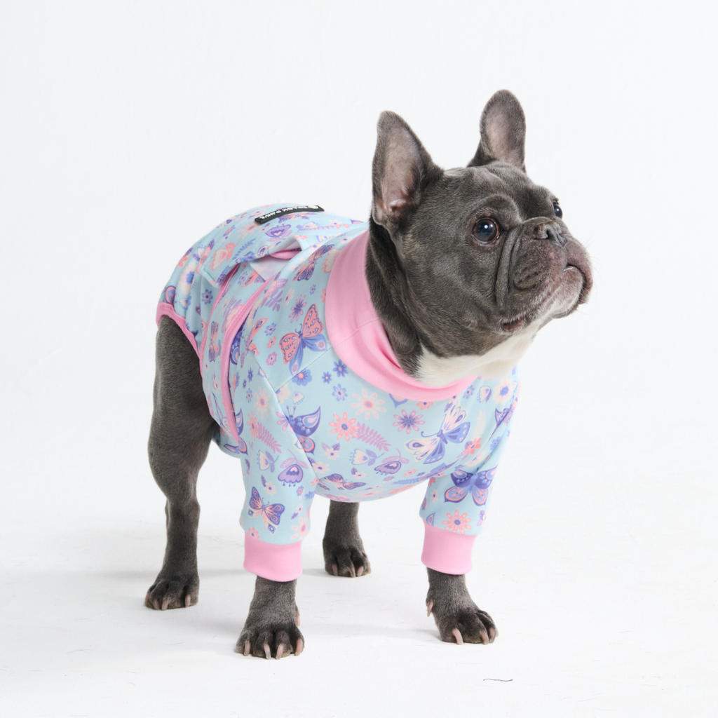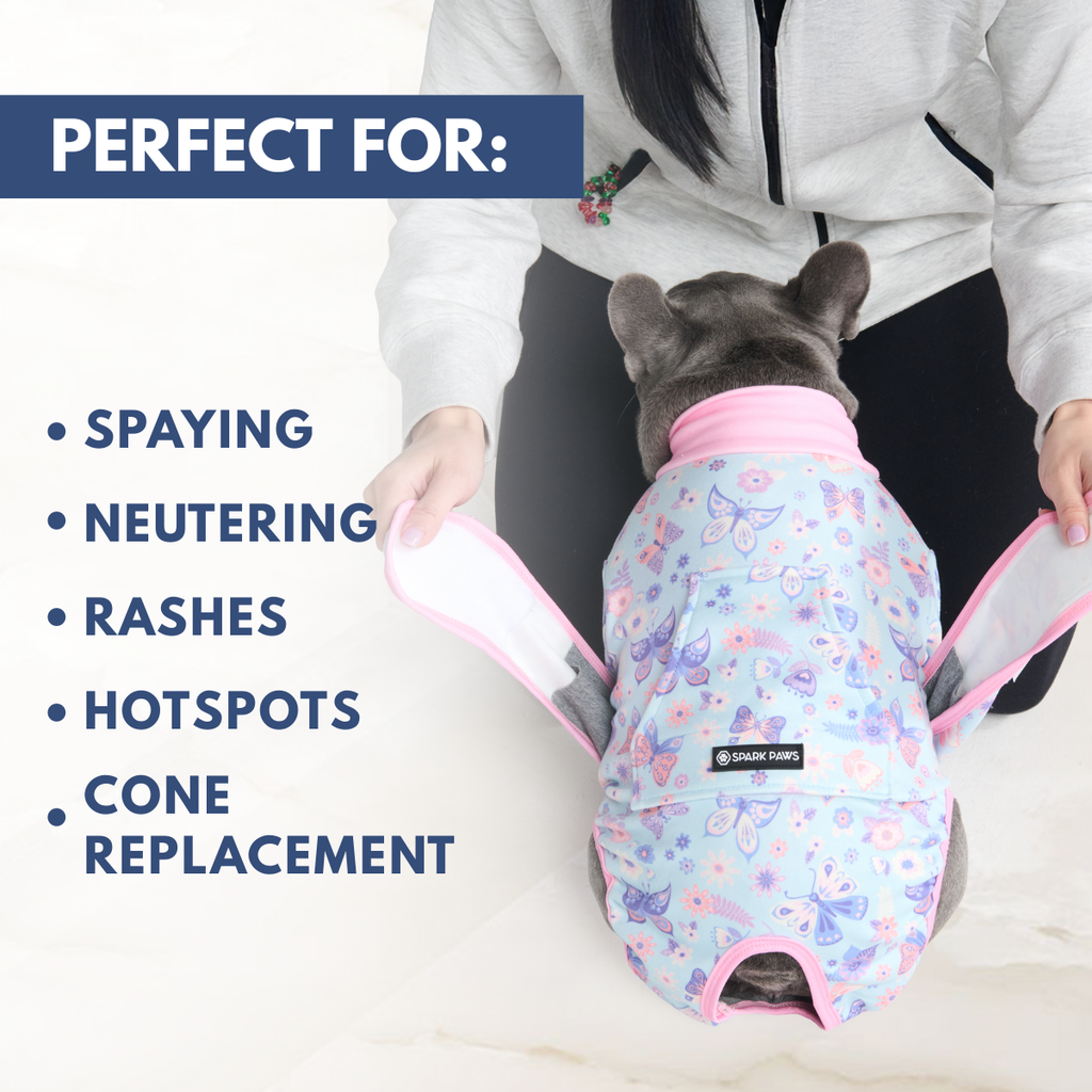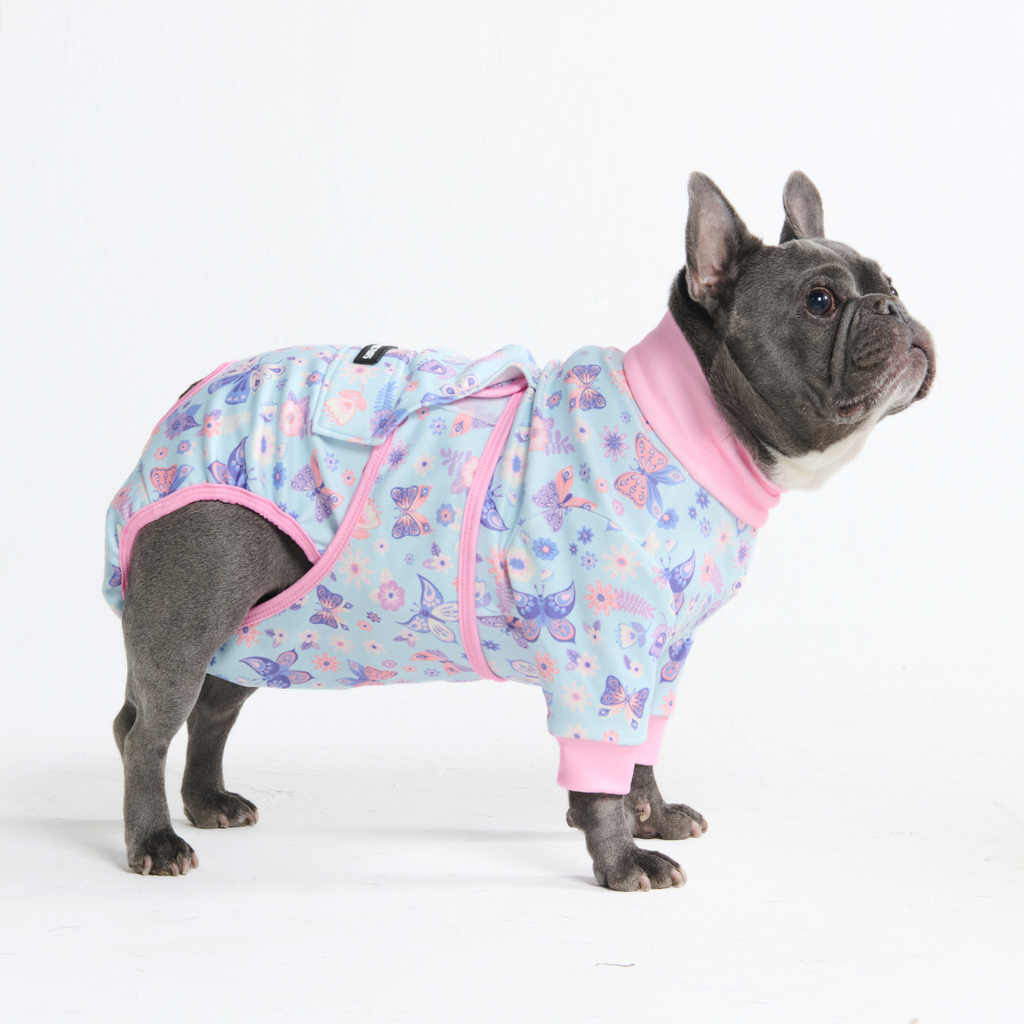 「エリザベスカラー」によるストレスをなくし、快適なリカバリータイムを。当社の術後ウェアは、愛犬の自由な動き、食事、睡眠を妨げることなく、患部をやさしく保護します。
