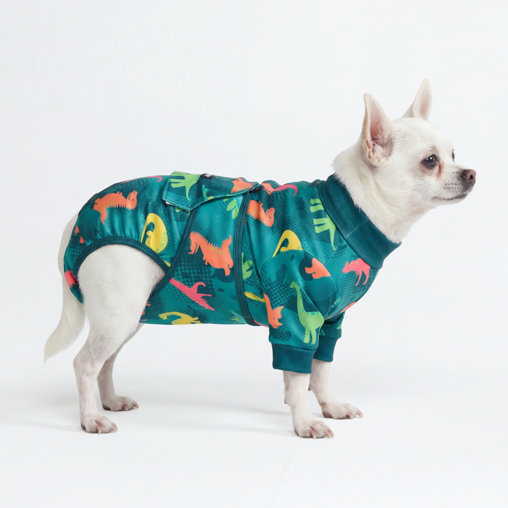 「エリザベスカラー」によるストレスをなくし、快適なリカバリータイムを。当社の術後ウェアは、愛犬の自由な動き、食事、睡眠を妨げることなく、患部をやさしく保護します。