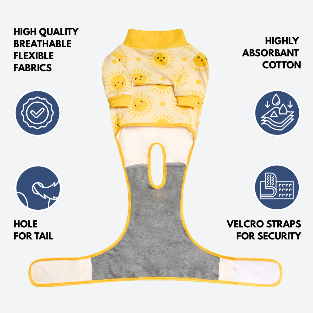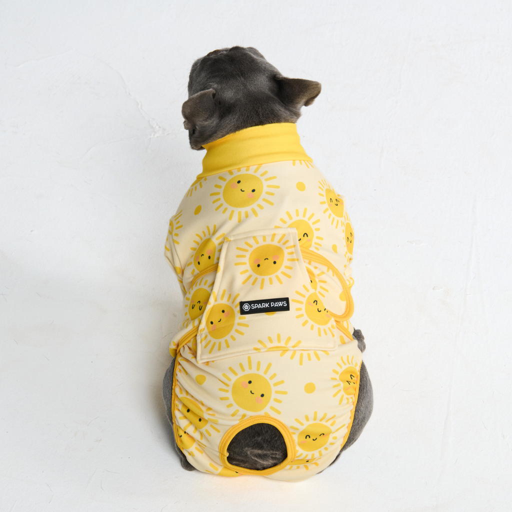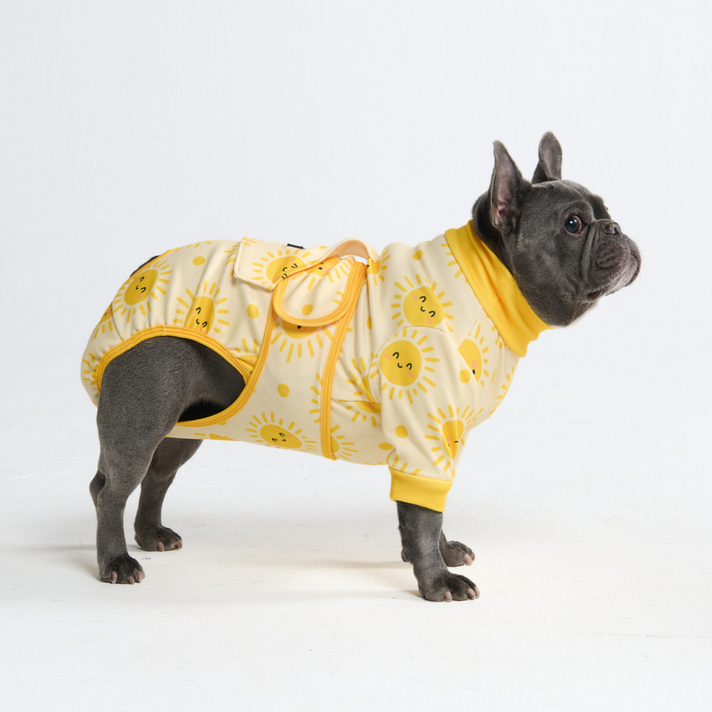 「エリザベスカラー」によるストレスをなくし、快適なリカバリータイムを。当社の術後ウェアは、愛犬の自由な動き、食事、睡眠を妨げることなく、患部をやさしく保護します。